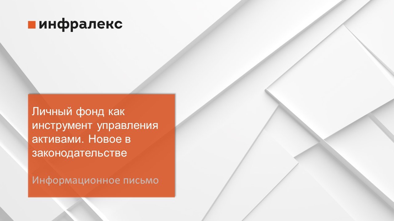Информационное письмо: Личный фонд как инструмент управления активами. Новое в законодательстве